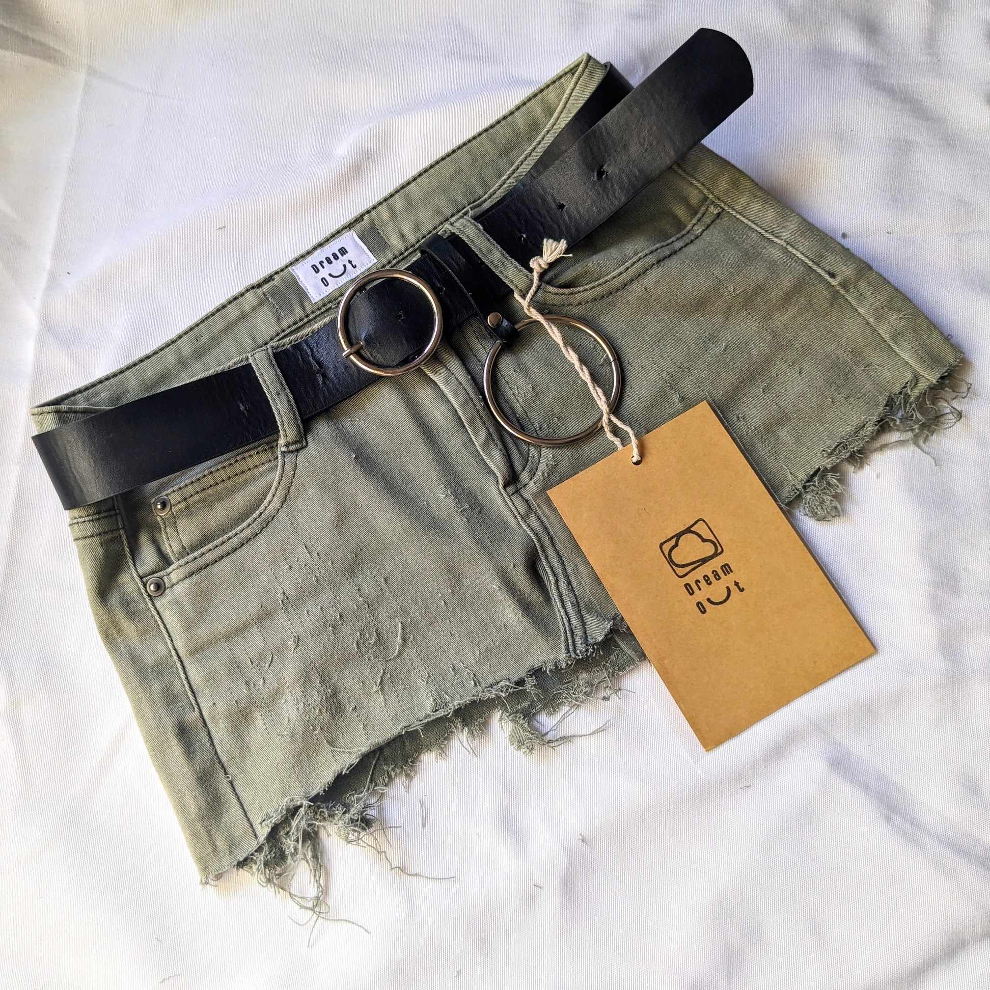 Keywords: vintage y2k 90s 2000s khaki green belt low rise low cut handmade local designer With tags
